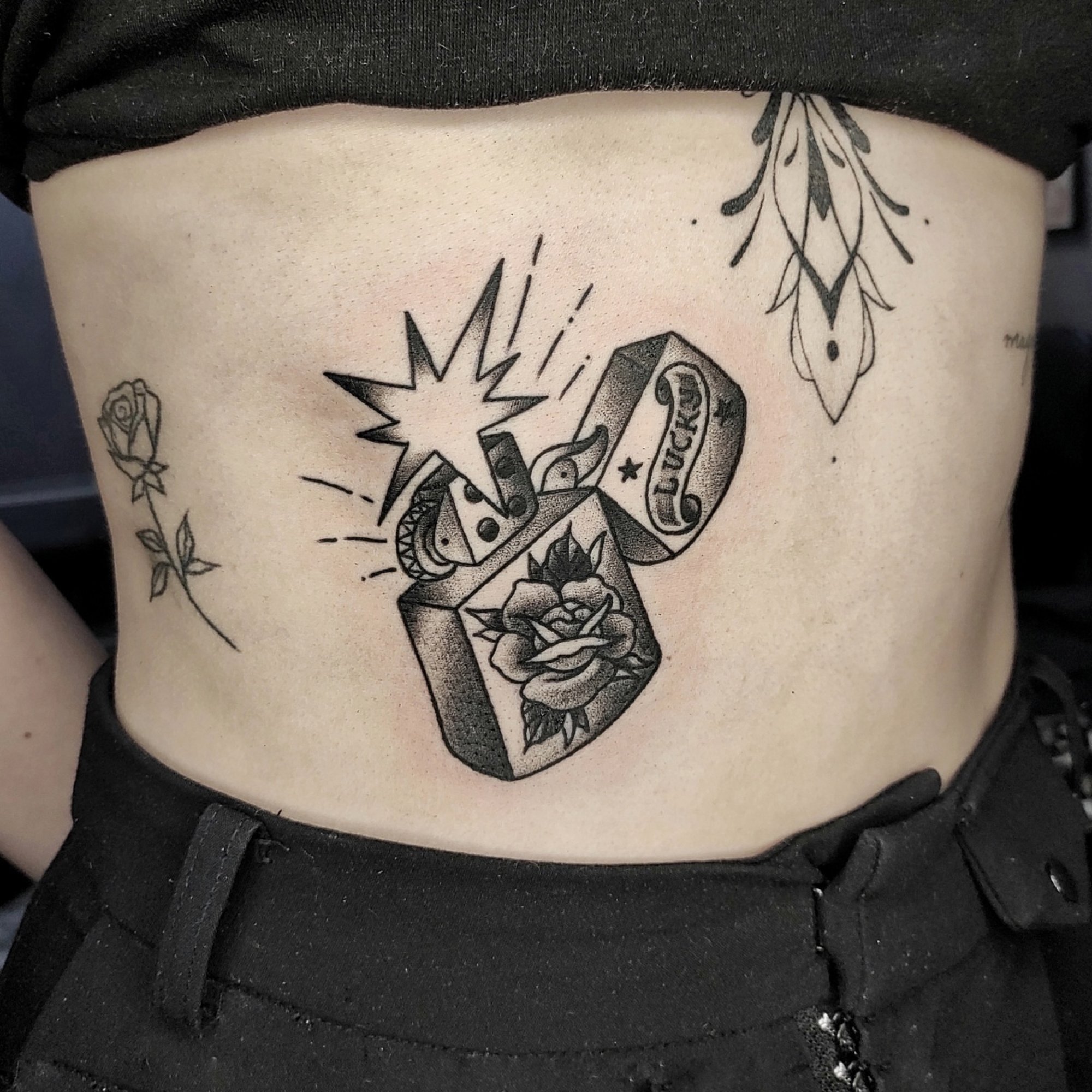 Тату роза и надпись
